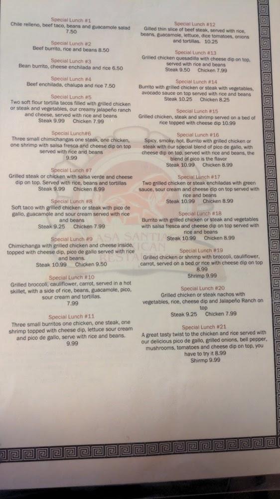 The menu at Casa Santiago is extensive, covering everything from fresh appetizers to hearty entrees. Start with guacamole or cheese dip, ideal for sharing. For mains, try the burrito Santiago or beef enchiladas, bursting with rich flavors.