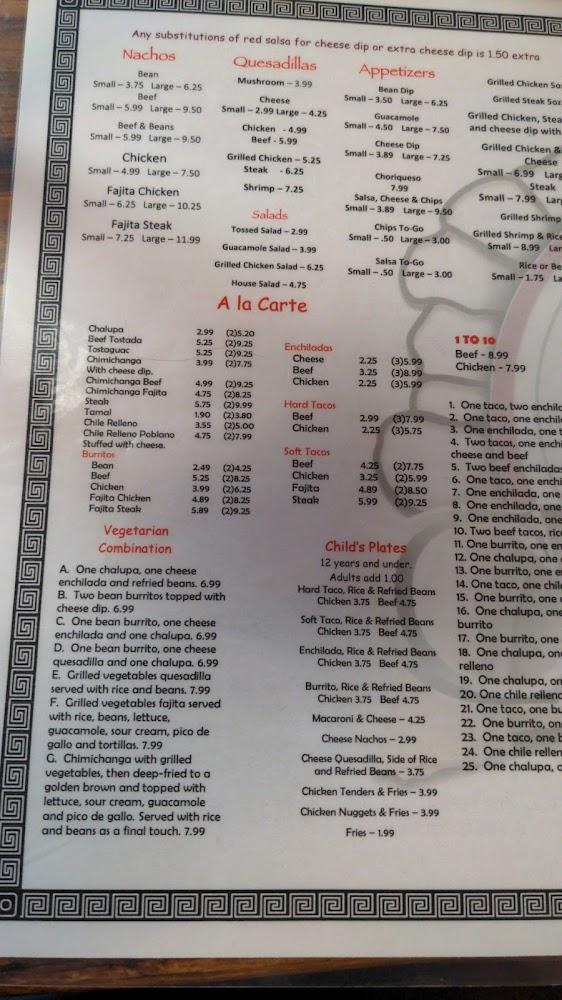 Vegetarian options are ample, showcasing grilled veggies alongside traditional platters like cheese quesadillas. The restaurant also offers daily lunch specials that provide great deals for those on a budget. Desserts include sopapillas and fried ice cream, perfect for ending your meal on a sweet note.